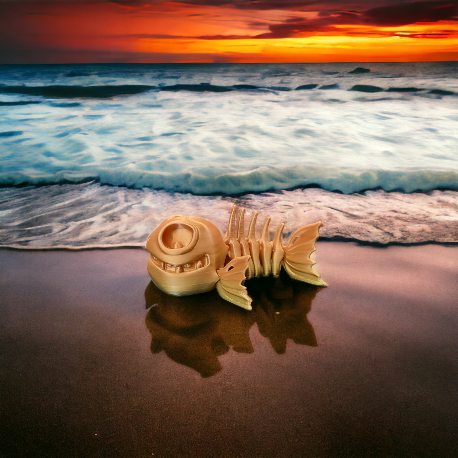Flexi Skeleton Fish 3D printed in either PLA, PLA+, PLA Silk or Multicolour PLA Filament This Item will be printed in one piece and has flexi joints so you can move it around. Colour choice: Beige, Black, Black/Gold, Black/Blue, Black/Green, Black/Purple, Bone White, Brown,...